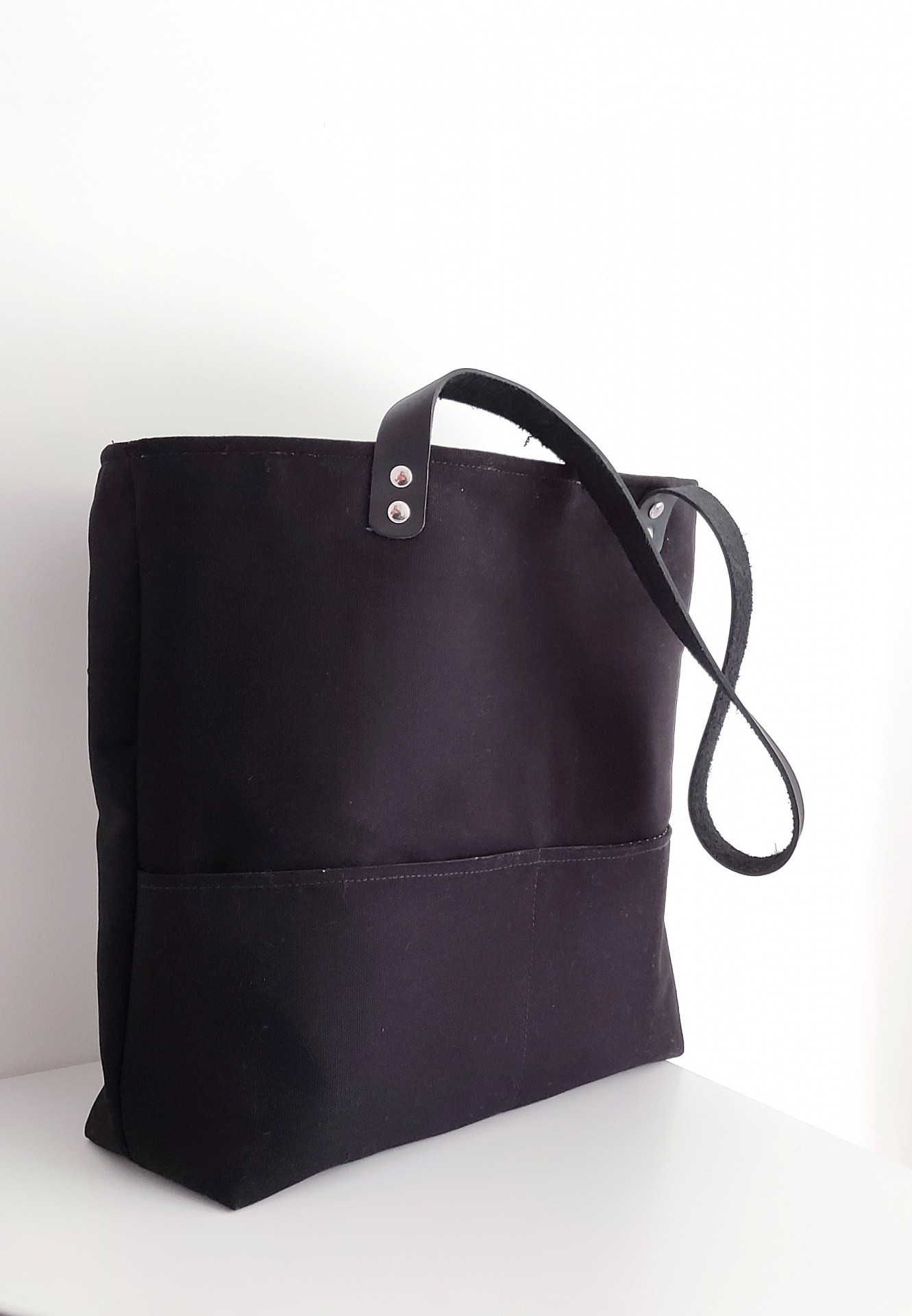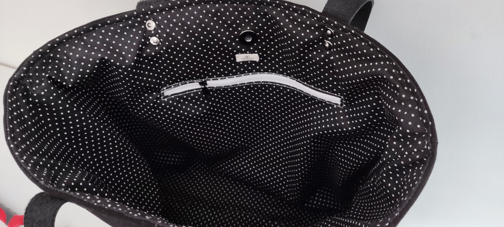 Mala estilo Tote bag, em tecido canva vermelho escuro, com dois bolsos no exterior, i